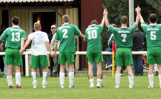 Bildfolge: li.oben: Andre Roth erzielte am Sonntag das 1:0 für die 1.Mannschaft! re.oben: Björn Spröd (ganz rechts) und Andreas Benson (Nr.7) hatten das Mittelfeld der "Zweiten" mit kleinen Abstrichen gut im Griff! li.unten: Torwart "Backe" Kyselka hielt seinen Kasten (3.Mannschaft) heute sauber! li.unten: Nach einem Sieg bedankt man sich in Rehagen bei den Fans. |