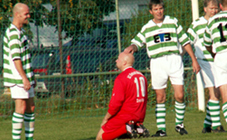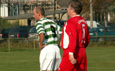 Bild links: Roland Senf spendet Trost für die nicht gerade durchschlagskräftige Offensivabteilung des Gastes. Rechts: Sven Bastian (Nr.9) heute mit einem ganz cleveren Tor! |