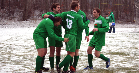 Am letzten Spieltag der Hinrunde konnte der RSV Mellensee einen wichtigen Auswärtssieg beim Tabellennachbarn in Schulzendorf landen. Vor dem Spiel lautete die Zielsetzung für den RSV einen Punkt mitzunehmen. Dass es am Ende gar drei Punkte wurden, ist dabei umso erfreulicher. Im Spiel brauchten beide Teams erst einmal 30 Minuten um mit den schwierigen Platzverhältnissen bei Dauerfrost klarzukommen. Nach einer halben Stunde rüttelte dann aber Schiedsrichter Dr.Niestlé alle wach, die beim bisher sehr ereignisarmen Spiel fast einschliefen. Ein Pfiff und es gab Elfmeter für die Hausherren. Thomas Holke hatte im Strafraum Foul gespielt, so sahen es zumindest der Schiri und sein Assistent. Auf der Mellenseer Bank war man geteilter Meinung, doch den Elfmeter konnte man schon geben, auch wenn Holke den Ball spielte. SGS-Kapitän Borsdorf trat an und traf mit einem platzierten Schuss zum 1:0 (30.). RSV-Keeper Schmidt ahnte zwar die Ecke, hatte aber keine Chance an den Ball zu kommen. Im direkten Gegenzug blieb dann die Pfeife zum Unmut aller Mellenseer stumm, dabei wurde Lütjens eindeutig im Strafraum zu Boden gerissen. Die erste Halbzeit näherte sich nun langsam dem Ende, alle freuten sich schon auf den wärmenden Pausentee. Allerdings sahen die Zuschauer kein schönes Spiel. Kurz vor der Pause gab es dann aber erneut eine strittige Szene, als Lütjens wieder im Strafraum von den Beinen geholt wurde. Auch hier hätte man durchaus Elfmeter geben können. Dies passierte allerdings nicht. In der zweiten Halbzeit bekam der RSV dann doch mit der Zeit in der Defensive einige Probleme. Schulzendorf drückte nun auf das 2:0, doch im Abschluss fehlte zum Glück in jedem Versuch die Genauigkeit. Auch gut für Mellensee, dass Keeper Oliver Schmidt einen großartigen Job machte und sich keinen einzigen Fehler leistete. Schulzendorf kam seinerseits immer wieder über die linke Angriffsseite und den starken Wieczorek. Trainer Meltendorf reagierte und brachte Benson für Klaus. Doch in dieser Phase konnte man kaum so recht glauben, dass der RSV hier noch einmal ins Spiel findet. Zu harmlos war die RSV-Offensive. Schulzendorf hatte wirklich alles im Griff. Doch mit der Schlussviertelstunde sollte die ganz heiße Phase des Spiels beginnen. Ziemlich rüde wurde André Roth im Strafraum attackiert, doch auch dieses Mal ertönte kein Pfiff. So langsam fühlte man sich dann doch etwas benachteiligt. Roth musste verletzt raus, für ihn kam Kleineidam. Damit im Zusammenhang stand die Umstellung von Holke auf die Liberoposition. Donat ging dafür in die Sturmspitze. Dies zahlte sich unmittelbar danach schon aus. Denn nach einer Ecke von Lütjens bekam Schulzendorf den Ball nicht weg, sodass Donat annehmen und einschießen konnte – 1:1 (78.). Da hatte Mellensee also nun das im Vorfeld angestrebte Remis. Mehr wollte der RSV eigentlich gar nicht, zumal Schulzendorf sofort wieder drückte. Schon im Gegenzug ließ der Schulzendorfer Top-Torjäger Steve Neumann eine unglaubliche Chance aus. Frei vor Schmidt spitzelte er den Ball am linken Pfosten vorbei (80.). Irgendwie wollte Mellensee das Resultat jetzt nur noch über die Zeit bringen und defensiv auf Nummer sicher gehen. Aber zwei Minuten vor Schluss hatte Mellensee aus halbrechter Position selbst noch eine gute Freistoßgelegenheit. Nachdem der Ball von Benson in den Strafraum gebracht worden war, pfiff Dr.Niestlé zur Verwirrung aller Strafstoß für den RSV. Er hatte wohl einen Klammergriff gesehen. Dennoch hätte man nie und nimmer in dieser Szene Elfmeter geben dürfen, da zuvor drei wesentlich schlimmere Fouls im Strafraum nicht geahndet wurden. Wie immer trat Lütjens an und vollstreckte erneut sicher zum 2:1 für den RSV (88.). Natürlich war die Freude groß beim RSV, doch das Spiel war längst nicht zu Ende. Es gab noch einmal 5 Minuten Nachschlag vom Schiedsrichter, der sich jetzt auch noch den Unmut der Schulzendorfer über seine zweifelhaften Entscheidungen anhören musste. Zu allem Überfluss musste ein Schulzendorfer Spieler auch noch wegen mehrmaligen Meckerns mit Gelb-Rot vom Platz (90.+4). Kurz darauf war dann Feierabend und beim RSV freute man sich über den 5.Auswärtssieg der Saison und sprach von gewonnenen „Big Points“. Damit geht eine sehr erfreuliche Hinrunde zu Ende, die Mellensee mit nunmehr 28 Punkten auf Platz 5, nur 2 Punkte hinter dem Tabellen-Dritten Sperenberg abschließt. S.Kotzan