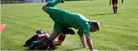 Bildfolge: ganz oben: Symbolcharakter ........?! Noch hält man sich ....! li.oben: Chr.Rüllicke hatte einen schweren Stand! re.oben: A.Saemann (li.) ist wieder mit von der Partie! li..unten: "Pocher" (R.Schley) konnte zumindestens den Ehrentreffer für die "Zweite" erzielen! re.unten: Machte eine gute Figur, F.Hänicke! (li.) |