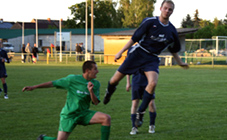 Bildfolge: Ganz oben: Norman Thiele gibt immer alles, aber wenn es nicht läuft, dann läuft`s ebend nicht! li.oben: T.Dochan unten - der Schenkendorfer Gegenspieler oben!? re.oben: M.Städtefeld (re) im Zweikampf mit seinem Stahnsdorfer Wiedersacher! li.unten: 3 tolle Tore steuerte heute "Katze" Olli bei! re.unten: Und 3 Tore Steffen Schwarz! |