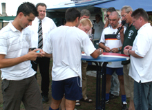 FUSSBALL: 2009 wieder in Westfalen Turnier um den Pokal des Borchener Bürgermeisters in Mellensee MELLENSEE - RSV-Spielführer Anthony Lütjens hat verhindert, dass es zu einer Neuauflage des Vorjahres-Endspiels zwischen dem SC Borchen und Mellensee, das die Brandenburger mit 2:0 gewonnen hatten, kam. Die „Glücksfee“ Lütjens loste vor Turnierbeginn beide Teams in die Vorrundengruppe A.
